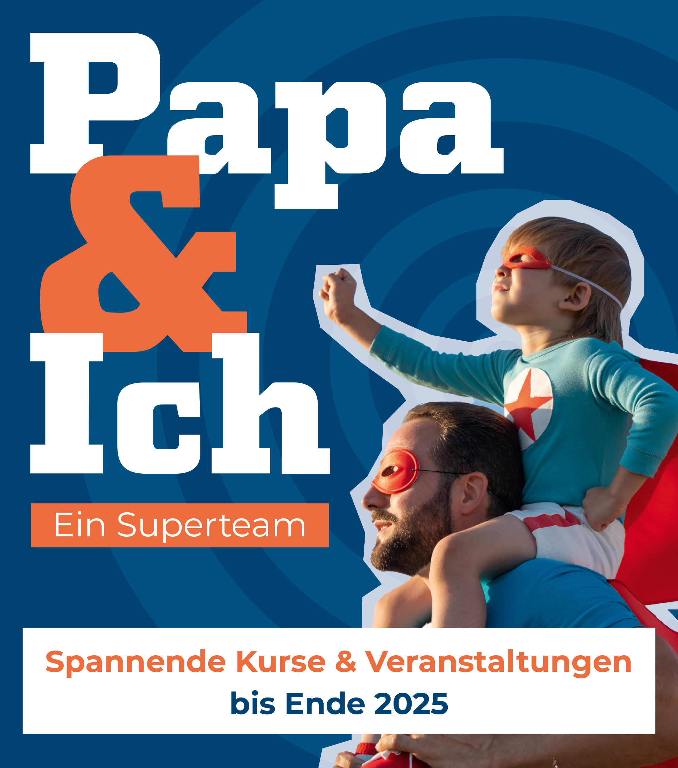 Die Veranstaltungsreihe „Papa & ich“ lädt Väter ein, gemeinsam mit ihren Kindern besondere Momente zu erleben, Neues auszuprobieren und wertvolle Impulse für den Familienalltag zu bekommen. Ob beim kreativen Mal-Workshop, in der Küche, zum Umgang mit Wut, Freude und Angst oder mit praktischen Tipps rund um Geburt und Babyzeit – hier steht die Vater-Kind-Beziehung im Mittelpunkt.