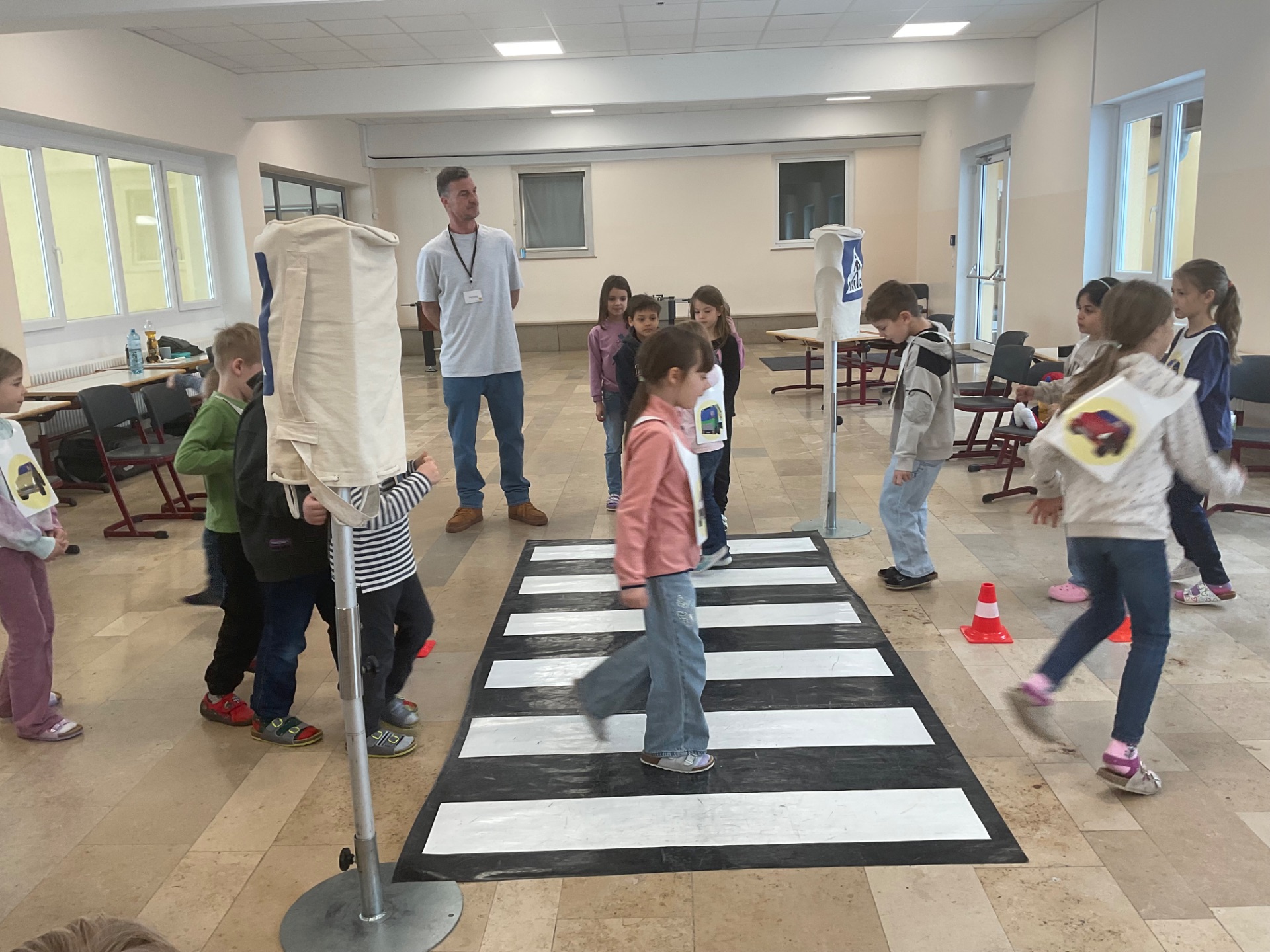 Im Mittelpunkt steht die Handpuppe ADACUS, ein freundlicher Rabe, der gemeinsam mit dem Trainer Pierre altersgerecht erklärt, wie man eine Straße richtig überquert, warum Sichtbarkeit im Straßenverkehr so wichtig ist und worauf die Kinder als Fußgänger besonders achten müssen.