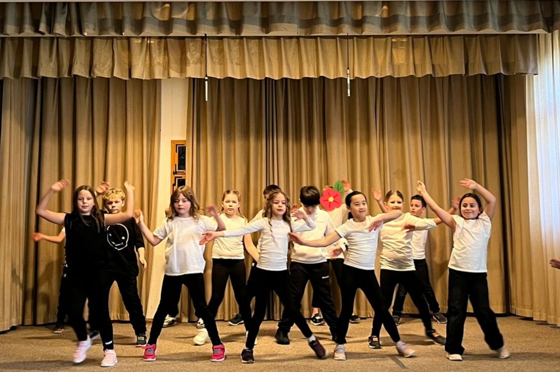 15 Schülerinnen und Schüler aus der 3. und 4. Klasse der Grundschule unterhielten das Publikum mit dem Song „Chöre“ von Mark Forster, das die Kinder mit ihren Lehrerinnen Christina Wirth und Hanna Werner einstudiert hatten.