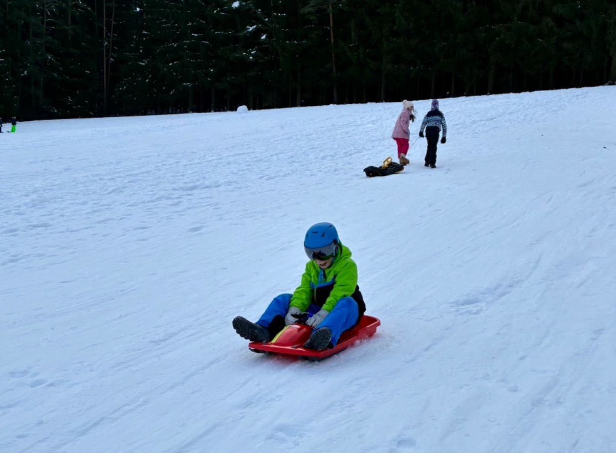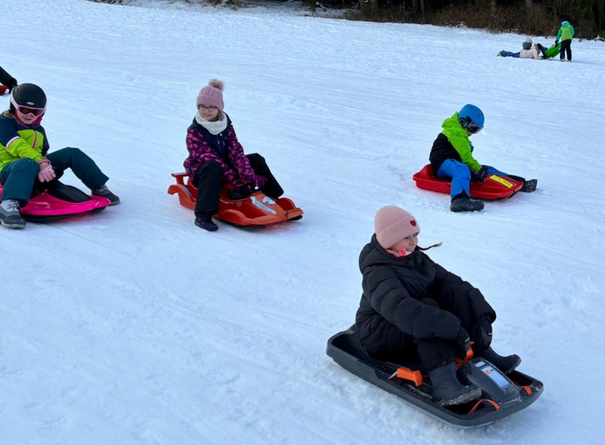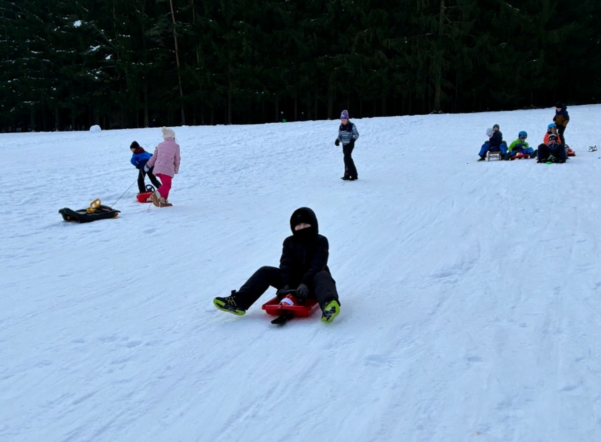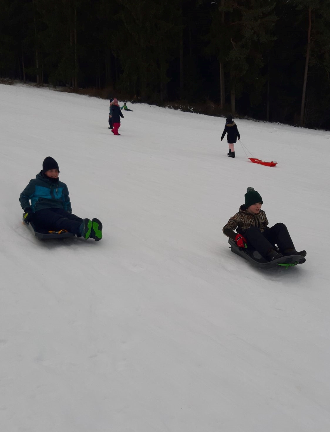 Die schneereichen Monate zu Beginn dieses Jahres boten der Grundschule Pressath endlich mal wieder die Gelegenheit, den Sportunterricht auf dem Schlittenberg nach Wollau zu verlegen. Das Verstauen der ebenfalls fast 120 Schlitten in die Busse lief reibungslos und so konnten sich die Kinder über rasante Abfahrten auf dem schneebedeckten Hügel freuen.